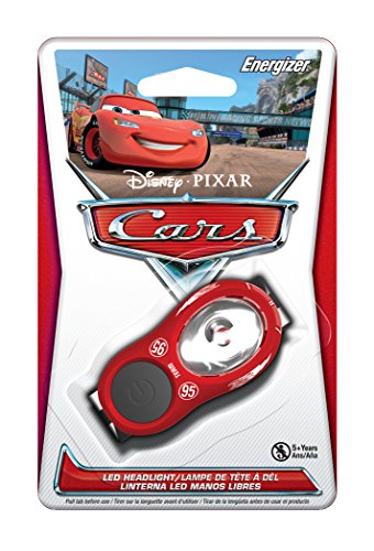 - Feature : White LED headlight features Disney Cars graphics on light and headband / Compact & lightweight for hours of fun / Comfortable nylon headband / Large pushbutton switch is easy for kids to operate / Includes 2 Energizer CR2032 lithium coin cell batteries
