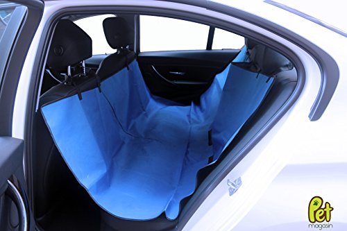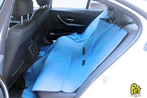 - Feature : Upgraded with stronger strap; Waterproof seat cover of heavyweight cloth that protects the back seat of your car from pet fur, dirty and muddy footprints, water, and clawing damage / Size is 57" x 57"; big enough to fit most cars, trucks, and SUVs / Tough, heavyweight material, fully waterproof. Fits most cars with headrests. (Headrests are required for anchoring the seat cover.) / Quick-release clips for simple install and removal, easy to fold up and pack away when not needed. / Manufactured and sold by Pet Magasin, this product comes with a 2-year warranty and 100% money-back guarantee.