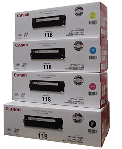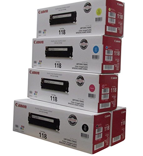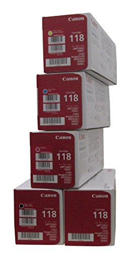 Original Canon 118 (5 Pack Toner Set) 2 Black Toner Value Pack, and 1 Cyan, Magenta, yellow Toner