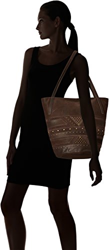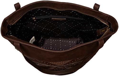 The joni tote is the perfect combination of fashion and function! features and full top zip and tons of interior room to keep all of your essentials organized, safe and secure. Tonal patchwork design and round stud detail put a fresh twist on this classic silhouette.