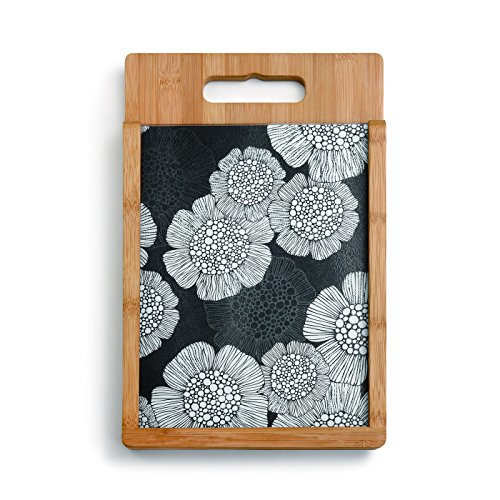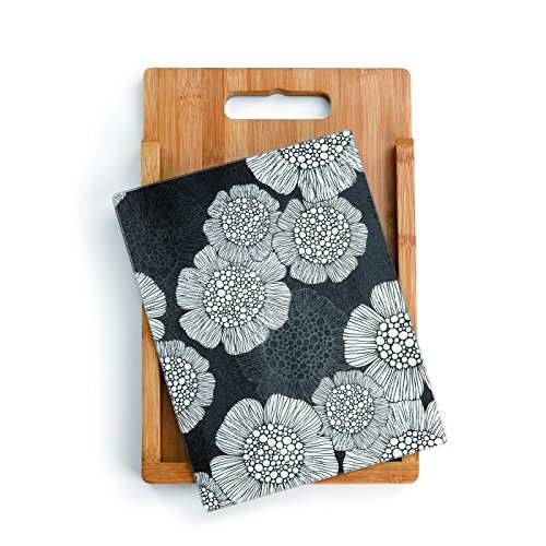 Demdaco Black and White Floral Wood and Glass Cutting Board Set, Multicolor