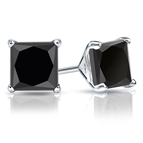 -. Title : 14k White Gold P.R.Incess Black Diamond Stud Earrings 4-Prong (2 cttw, Black Color)