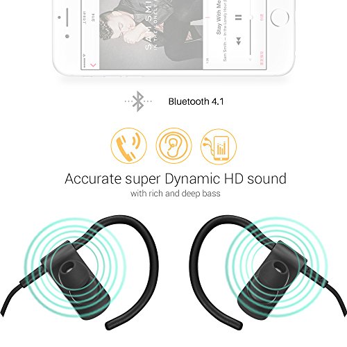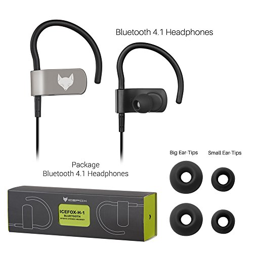 Bluetooth Headphones, icefox Wireless Stereo Earbuds, Secure Fit for Sport, Gym Earphones with Built-in Mic ( (Bluetooth 4.1, aptX, CVC 6.0 Noise Cancelling, 7 Hours Play Time)