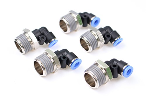Generic Pneumatic Push in Quick Touch to Connect Fitting 1/4" OD Tube x 1/2" Male NPT 90 Deg Swivel Elbow Coupler (Pack of 5)