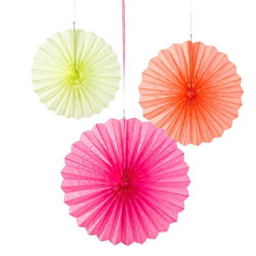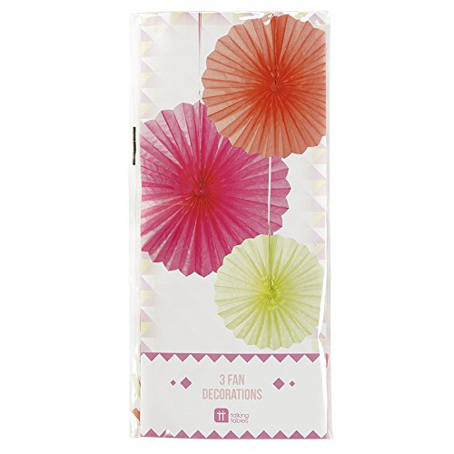 Talking Tables Decadent Decorations Fluro Mix Size Fans (3 Pack), Multicolor