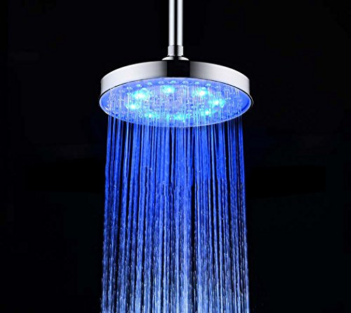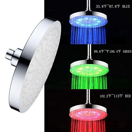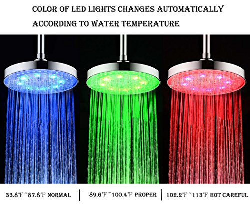 High Pressure Shower Head LED High Flow Rain Fixed Chrome Showerhead-LED Colors changes automatically according to water temperature-Powered By Running Water-For the Best Relaxation and Spa