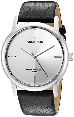 Armitron Men's 20/5140WTSVBK Silver-Tone and Black Leather Strap Watch