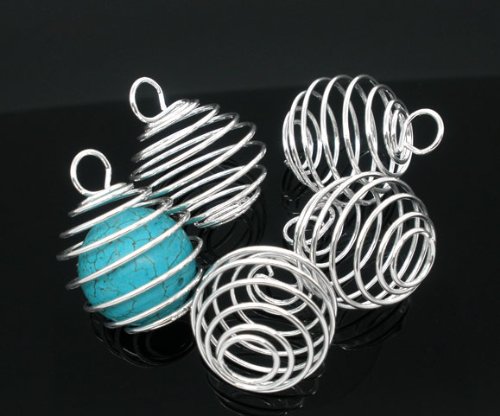 PEPPERLONELY Brand 20PC Silver Plated Spiral Bead Cage Charms Pendants (Holds 18mm - 22mm Beads)