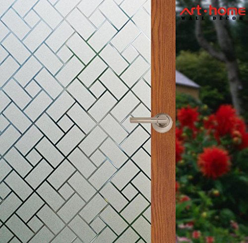 Arthome 17.7 x 100 inch Frosted Decorative Privacy Window Films No Glue Self Static Cling Anti UV Non-Adhesive Removable for Bathroom Living Room Bedroom Kitchen Office Home (45 x 254 CM, AHS159)