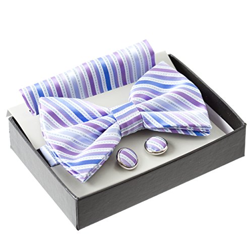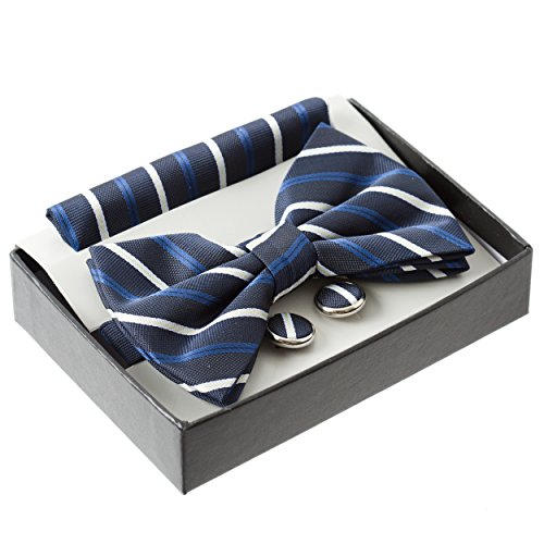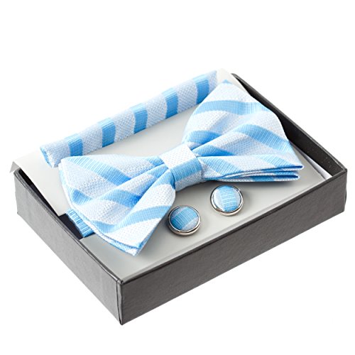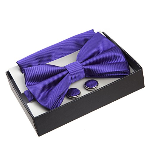 Product Description This stylish bow tie is suitable for both casual formal wear. Comes with a box with matching pocket square and cufflinks. A great gift to suit any gentleman's attire. 0