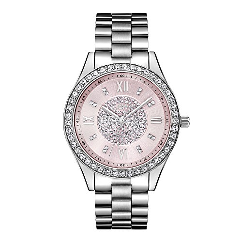 18K Rose Gold-plated stainless steel bezel with Swarovski crystals, 16 diamonds on the hour markers and paved crystals in center of the dial.