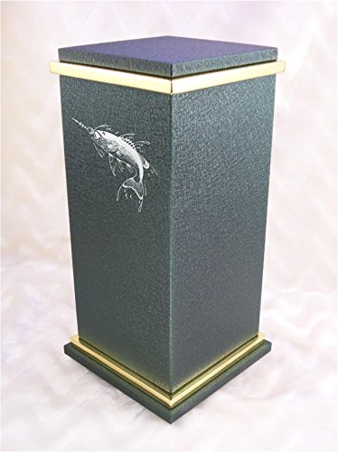 PERSONALIZED Custom Engraved Fishing Cremation Urn Vault by Amaranthine Urns, made in the USA, Eaton RG Polished Gold (up to 200 lbs living weight) (Slate Grey)
