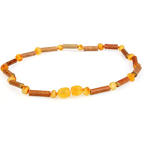Hazelwood & Amber Teething Necklace - Handmade in Baltic Lithuania - 12.5 Inches for Baby Girl or Boy – Hazlewood Can Improve Eczema, Colic, and Acid...