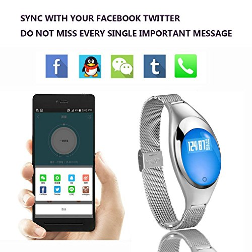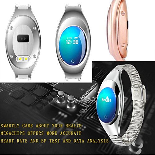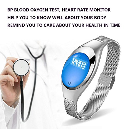♥HIGHLIGHTS:Heart rate and blood pressure monitor,24 hours intelligent dynamic measurement BP heart rate, blood oxygen monitoring.Made from Milanese Stainless Steel Material, perfectly combines both health and fashion.