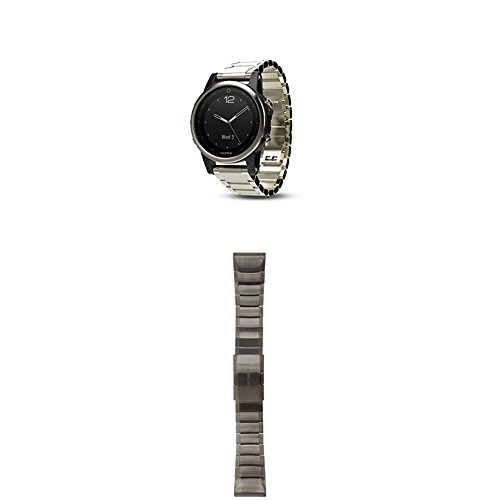 -. Title : Garmin Fenix 5S Sapphire - Champagne with Metal Band and 010-12517-05 Fenix 5X Quick fit 26 Watch Band - Slate Grey Stainless Steel