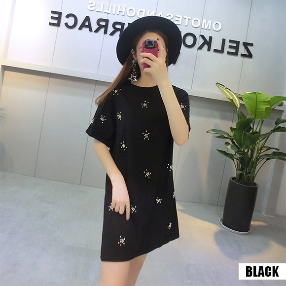 ゆったり大きめのサイズ感が可愛いTシャツワンピです。