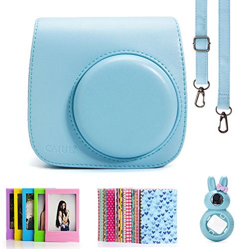 CAIUL 4 in 1 Fujifilm instax Mini 8 8+ 9 Camera Accessories Bundles (Blue Instax Mini 8 8+ 9 Case / Close-Up selfie Lens / Colorful Film Frame / Film Stickers)