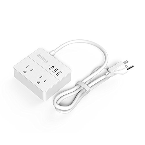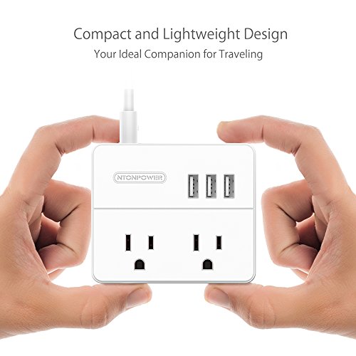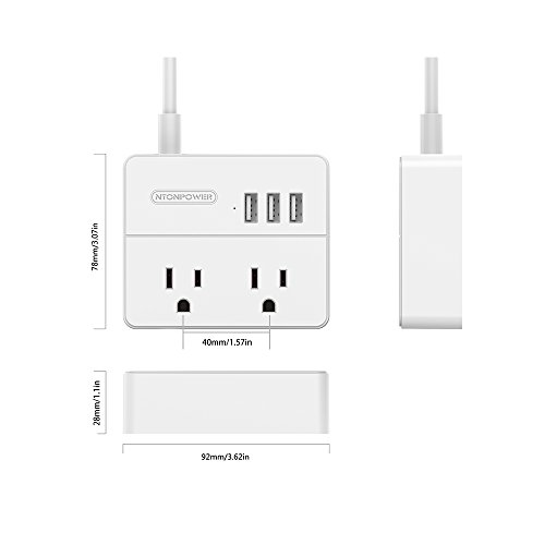 NTONPOWER Travel Power Strip with 2 Outlets and 3 USB Charging Ports Small Power Station for Smartphone Tablets - White