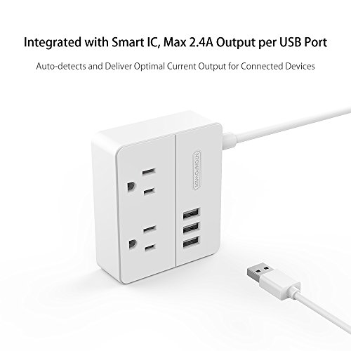 A must have for the desk area of your hotel room when traveling. Easily charges your smart phone, tablet, plus rechargeable power bank via 3 USB ports. And the 2 outlets can perfectly handle your electrical razor and laptop