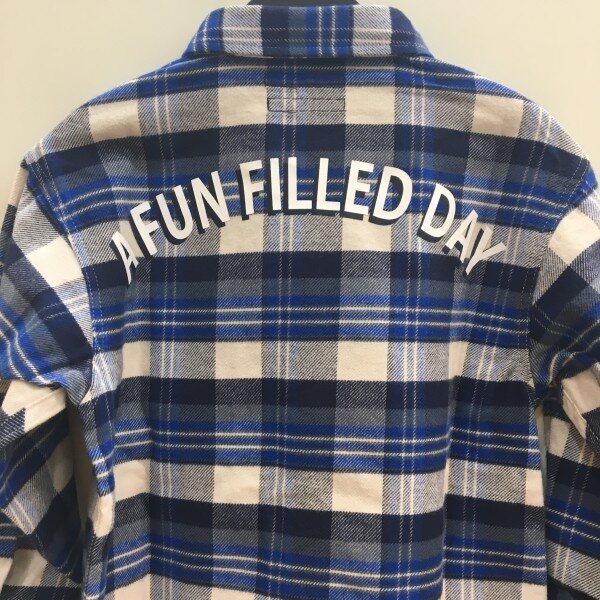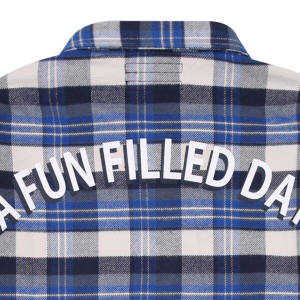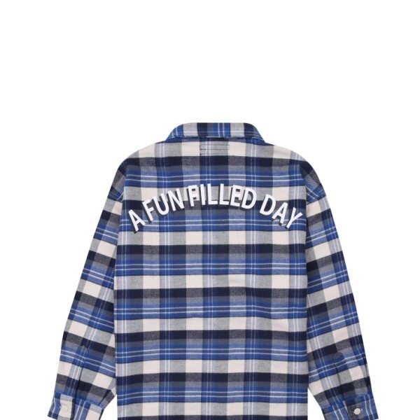 뒤쪽에 레터링이 포인트로 들어간 체크 셔츠 상품입니다.^^