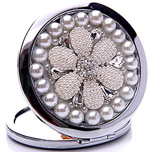 EVTECH(TM) 3D Bling Crystal Rhinestones Stainless Travel Compact Pocket Crystal Folding Foldable Makeup Mirror(100% handmade)
