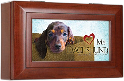 Love My Dachshund Cottage Garden Rich Woodgrain Finish Petite Jewelry Music Box - Plays Song Wonderful World