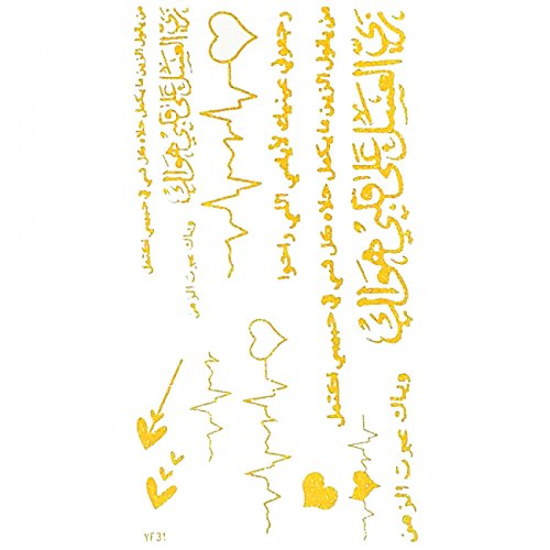 Spestyle fashionable and beautiful tattoo size 6.69""x3.74" Gold Golden Ancient words fake temporary tattoo stickers