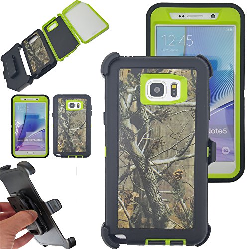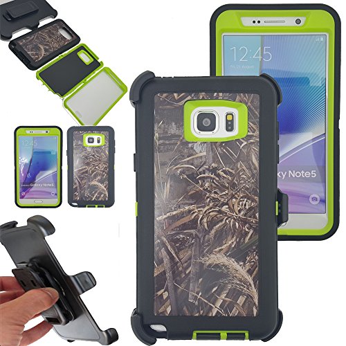 Kecko® Shockproof Dirt proof Military Grade Drop Scratch Resistant Hybrid Bumper Full Body Protective Camo Case with Belt Clip Holster for Samsung galaxy Note 5 (Forest Green)