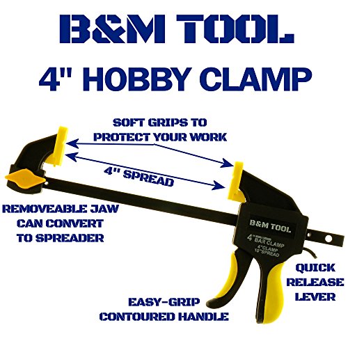 NON-MARRING RUBBER PADS: B&M Tool's Craft & Hobby Bar Clamps have rubber pads on the grips to protect your project from scratches while providing greater gripping strength