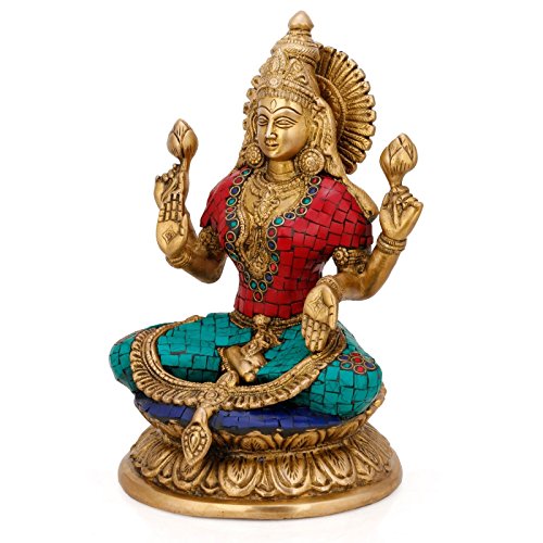 9" Gorgeous Goddess Lakshmi- Hindu Deity of Wealth Brass Statue- Good Luck Prosperity Anniversary Easter Gift