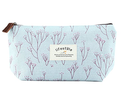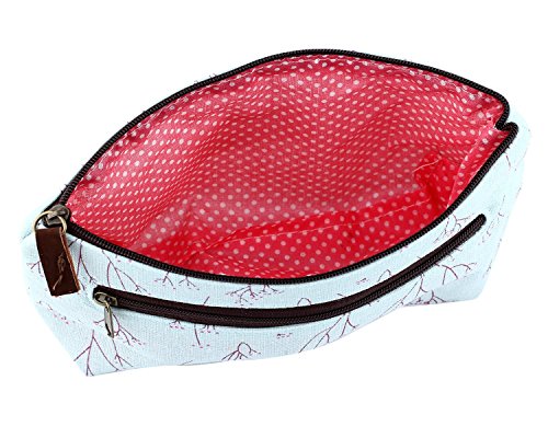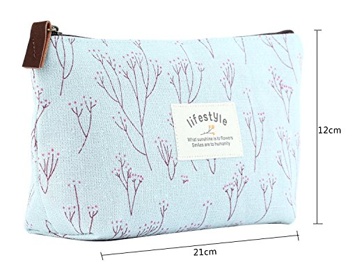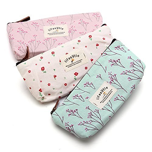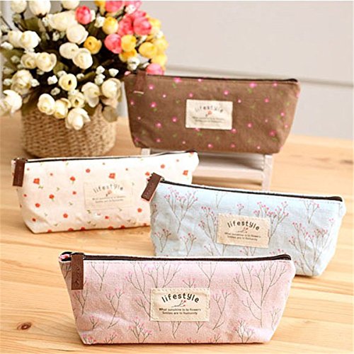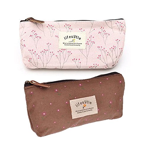 Aigori Portable Floral Canvas Pen Bag Pencil Holder Case Cosmetic Bag Makeup Pouch Pocket with Zipper Closure (coffeex2+pinkx2)