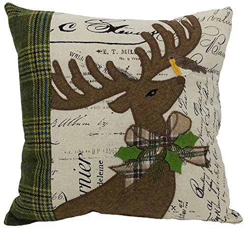 Xia Home Fashions Reindeer with Applique Suede Collection Christmas Decorative Pillow Polyester Filled, 14 by 14-Inch