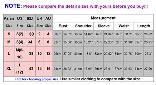 -. Feature : Asian S (US-S (2), UK 2, AU 4) / Asiatisches M (US S (4), UK 6, AU 8) / Asian L (US M (8-10), in Gro?britannien 10, AU 12) / Asian XL (US L (12), in Gro?britannien 14, AU 16) / Gr??e: Es gibt vier Gr??en (S, M und L, XL) f¨¹r die folgende Auflistung. erlauben Sie bitte 1-2cm sich unterscheidet wegen des manuellen Ma?es, Dank (alles Ma? in cm und merken bitte 1cm = 0.39inch)