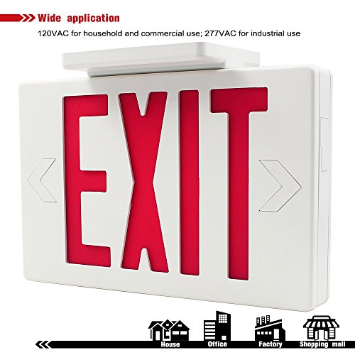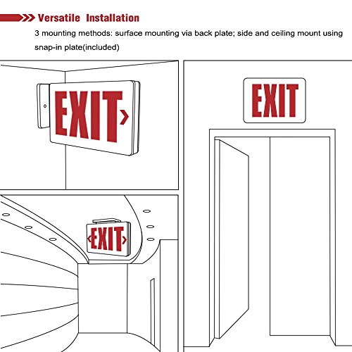 AC 120V/277V Single/Double Face LED Exit Sign Red Letter UL-Classified with Battery Backup Ceiling/Side/Back Mounting LED Indicator Exit Light for Residential and Commercial - EL04