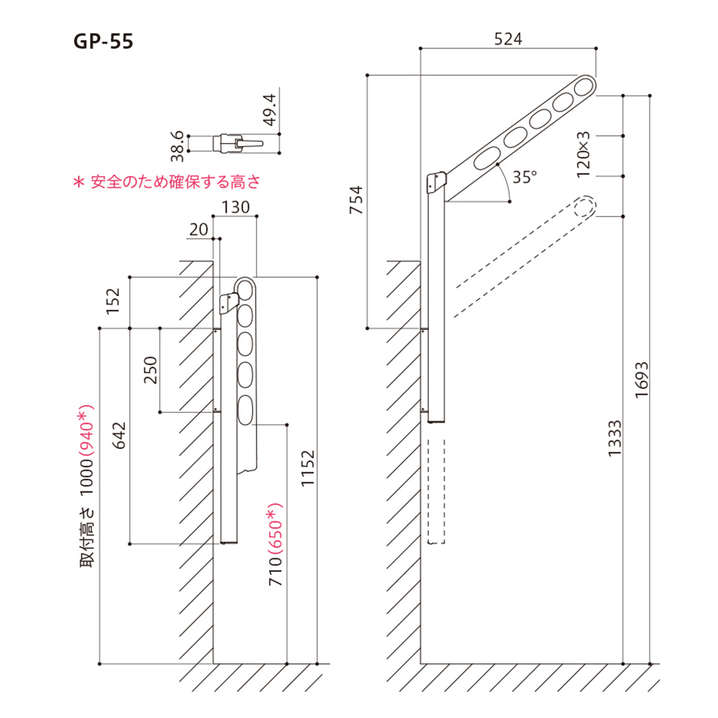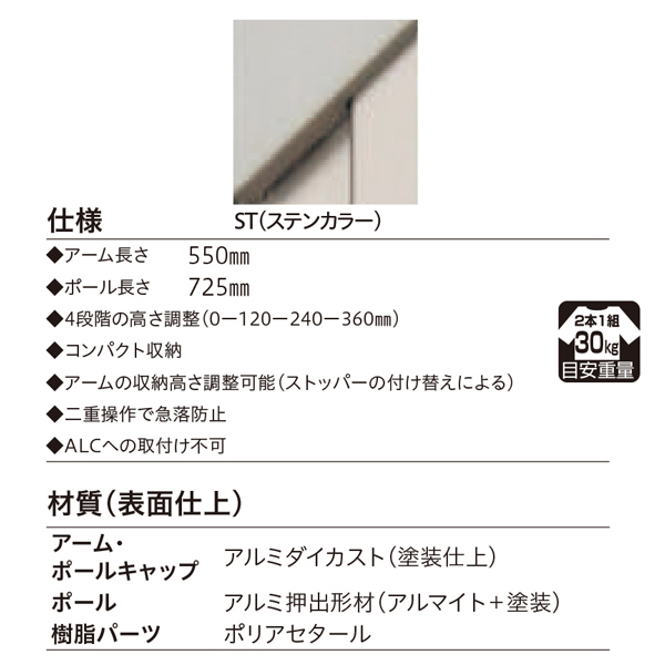 ●材質:アーム:アルミダイカスト ポール部:アルミ押出材