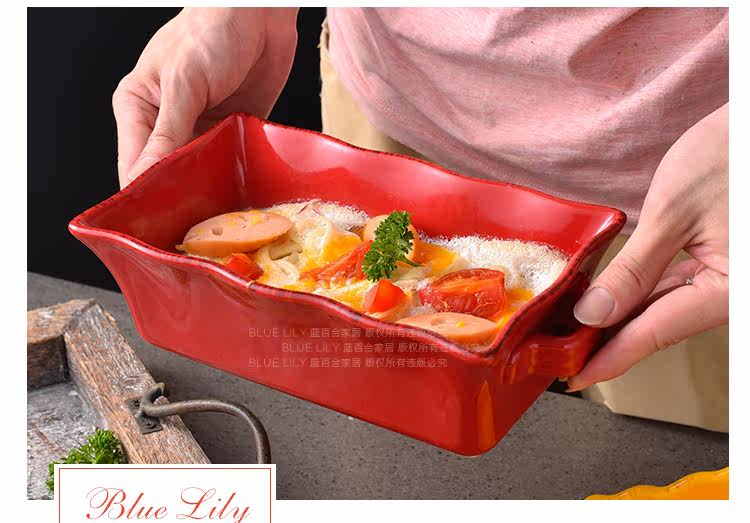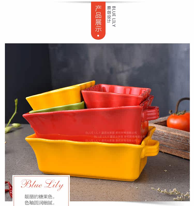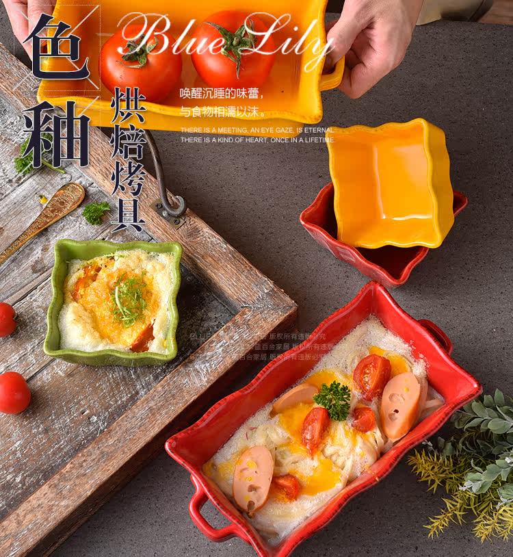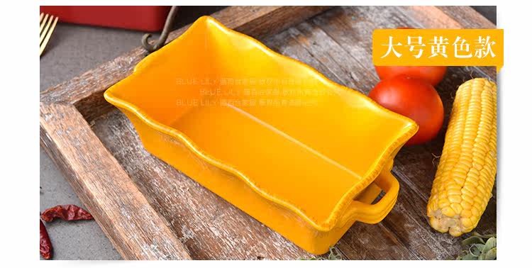 出口双耳陶瓷烤盘芝士吐司焗饭盘烘焙烤箱盘创意家用水果沙拉盘碗