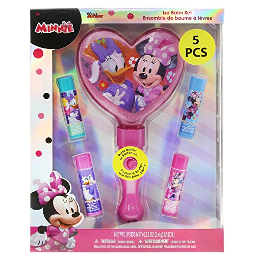 -. Binding : Health and Beauty -. Brand : TownleyGirl -. EAN : 0719565385735 -. Feature : FAVORITE CHARACTERS The light up mirror and each lipstick are decorated with different characters from Disney's Minnie Mouse. Kids will have fun showing their friends this spunky collection / GREAT BIRTHDAY OR HOLIDAY GIFT IDEA Each lip balm in this set is decorated with an image of everyone's favorite frozen characters Minnie and Daisy. Multiple colors for creativity and to appeal to any personality! / PERFECT FIRST MAKE-UP This gloss is the perfect first beauty product. Children will love using the lipstick and showing off their sparkles! / SAFE AND NON-TOXIC Water-based formula makes these cosmetics safe for young ones aged six years old and up, including tweens and teens. / AGES 3 AND UP This kit of lip glosses is recommended for children ages 3 and up -. IsAdultProduct : 0 -. Label : TownleyGirl -. Manufacturer : TownleyGirl -. MPN : Disney Light Up Mirrors -. PartNumber : Disney Light Up Mirrors -. ProductGroup : Beauty -. ProductTypeName : BEAUTY -. Publisher : TownleyGirl -. Studio : TownleyGirl -. Title : TownleyGirl Minnie Mouse, Frozen, Disney P.R.Incess and Beauty and the Beast, 4 Pack Lip Balm with Light Up Mirror, 5 CT (Minnie Mouse) -. UPC : 719565385735