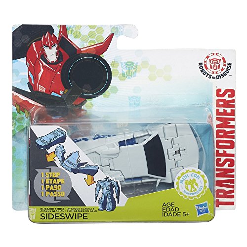 -. Feature : 1-Step Changers Sideswipe figure / Works with Mini-Con Weaponizers figures (each sold separately) / Scan the figure to unlock content in the Transformers: Robots in Disguise app / Unlocks Sideswipe and a sword in the app / Figure scale: 4.25 inches / Includes Sideswipe figure