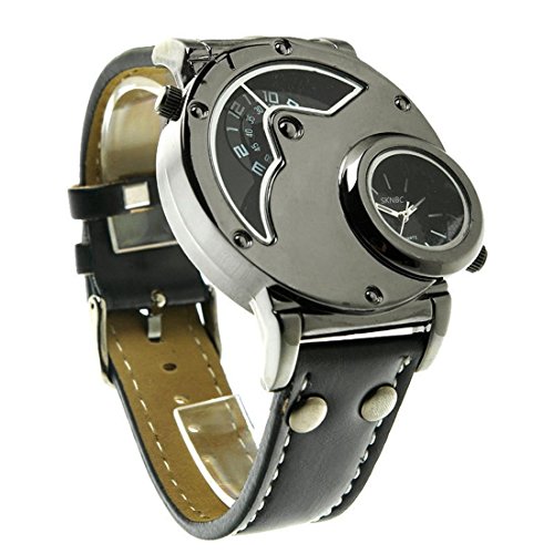 New Russian Aviator Pilot Army Military Sports Quartz Mens Wrist Watch Dual Time Black Leather ...
