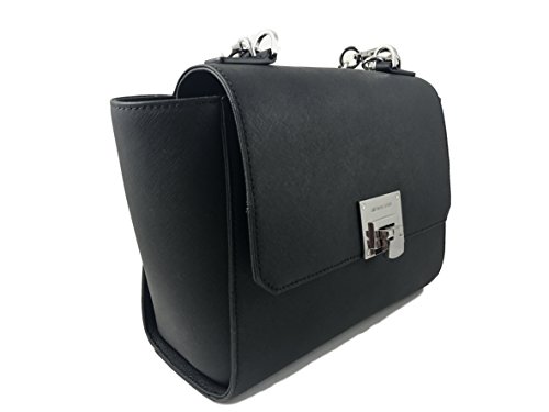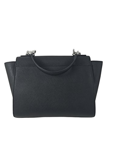 -. Brand : -. Color : Black -. Department : womens -. EAN : 0191262035852 -. Feature : Black saffiano leather with silver tone hardware. / Top handle flap satchel bag with cross body long strap. / Interior: 1 zippered pocket & 4 slip pockets. / Exterior: pocket at the back with magnetic snap closure. / Approximate dimensions: 12.5" (L) x 7.5" (H) x 4.25" (D) -. ProductGroup : Shoes -. ProductTypeName : HANDBAG -. Size : Medium -. Title : Tina MD Saffiano Leather Satchel Bag in Black/Silver Tone Hardware -. UPC : 191262035852