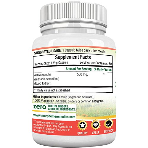 Morpheme Ashwagandha (Withania somnifera) 500mg Extract 60 Veg Caps