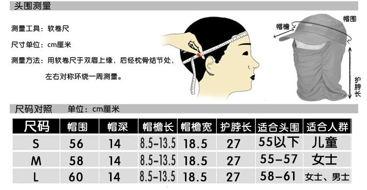 此款为男女同款,由于帽身后有弹性的橡筋调节,因此帽围58cm(M)的适合55-58的头围,帽围60cm(L)适合58.5-62的头围,56CM(S)适合儿童。