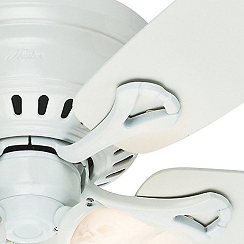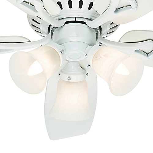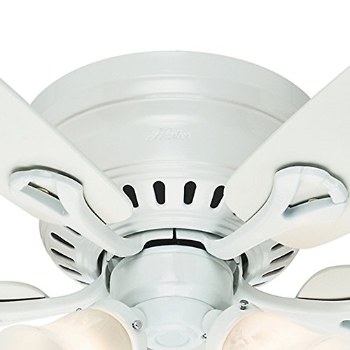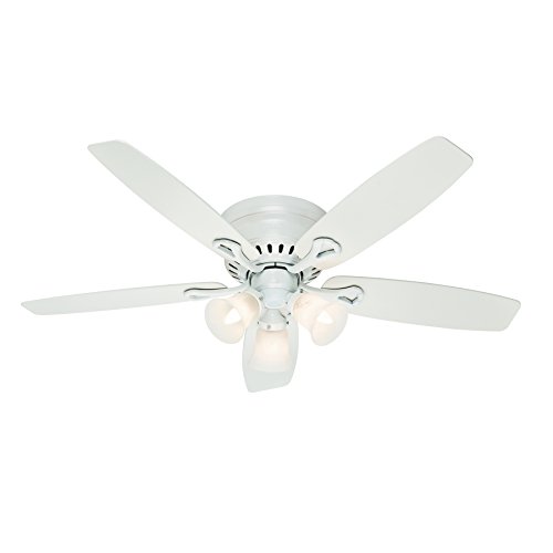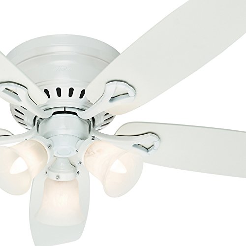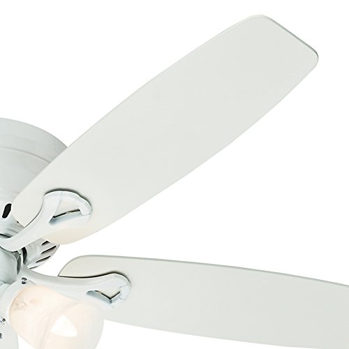 This traditional low-profile fan remains a classic. This fan has a 52-inch blade span and flush mounting system, making it ideal for large rooms with low ceilings or for those who prefer a more discreet look that stays close to the ceiling. The swirled marble glass add a touch of beauty, while the powerful motor and incandescent bulbs bring enough power and light to fill the room.