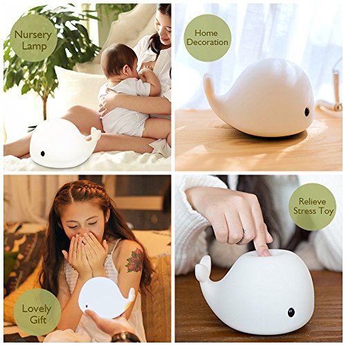 How to use: * Charge the night lamp for about 2 hours before use, after full charged,it will automatically light off; * Press the main power button on the bottom to turn it on and the lamp will stay at dim white light mode; * Tap the back of dolphin to switch to bright white light, change to Red / Yellow / Green / Blue / Rose Red / 7 breathing lights by tapping at the tail part;