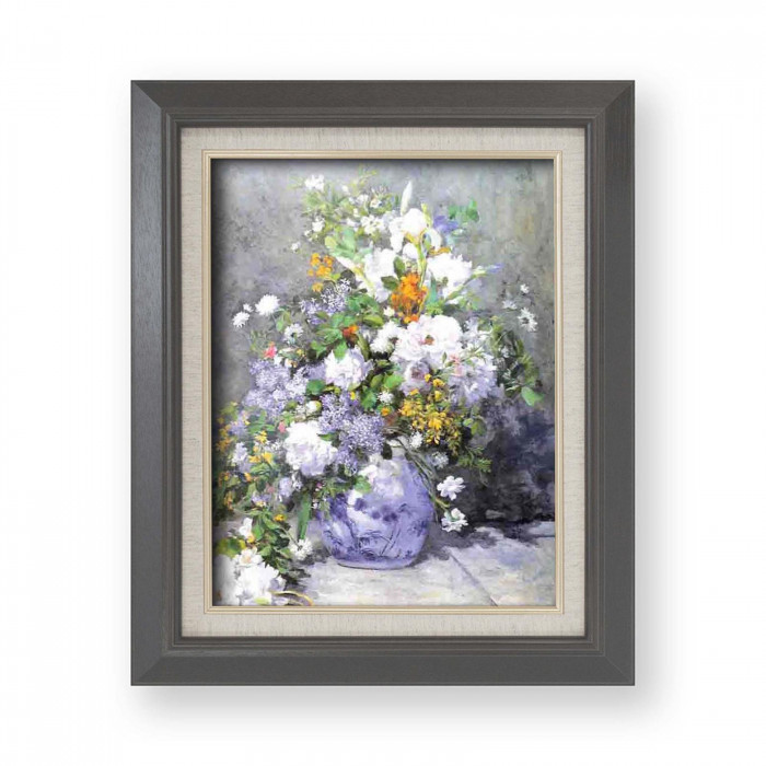 みずみずしい色彩で描かれた人気の名画。見事な構図と多様な色彩で表現された印象派ルノワールの作品です。大きさも色も異なる花々が描き込まれ、まるでその生命力を競っているかのようです。ご自宅やプレゼントとして喜ばれる名画額です。