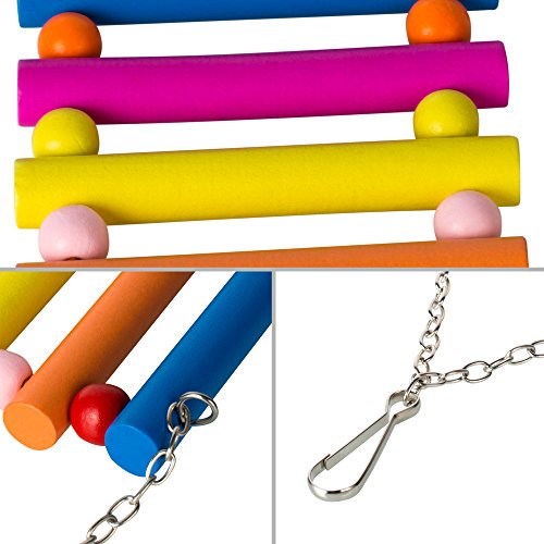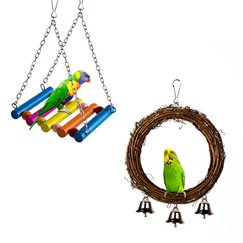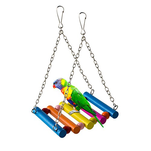 Why Choose PAMAGOO Bird Swings Toys? - Pamagoo bird swing toys, composed by the timber, edible dye painting. 100% safe and non-toxic. - Bright colors to attract parrot and small animals' attention. No harmful color gel added, it will not fade while immersing into water. - These are toys for your birds to climb onto, swing on, shake, peck at, and perhaps tear apart. (Destroying toys is a natural and healthy part of play for many birds.) - Designed for Cockatiels, Finches, lovebirds, Conures, Parakeets and other small to medium pet birds, the hammock style swing is easy to install inside or outside the cage using two standard metal clasps. - The metal fittings under the toy will hit each other to make sounds while the parrot is playing with it, The bell sound is very pleasant.? - A great gift for your pet, your pet will like it very much. ? WARM NOTICE:? 1.?Rattan hanging toy was wound and fixed by the brown copper wire. There would be a copper wire extrudes from the knotted part, to protect your bird, we advice you to check and trim that part or put that part under the rattan when receive our product. 2. Sometimes a bird will be frightened by a new toy. If your bird seems stressed by a toy, try putting it outside the cage where the bird can see it for a few days before moving it into the cage. Specifications: Material: Wood, Nature Rattan, Metal bells and chains Color: Colorful - send by random. Wooden Hammock Swing: Overall length is 30 cm/11.8 inch;? ? ? ? ? ? ? ? ? ? ? ? ? ? ? ? ? ? ? ? ? ? ?the wooden part size(L)x(W): 13 x 10 cm/5.1 x 3.9 inch;? Rattan Swing Toy: Size(L)x(W): 22cm x 15cm/8.7 x 5.9 inch; Package:? 2 x Bird Swings 0 |