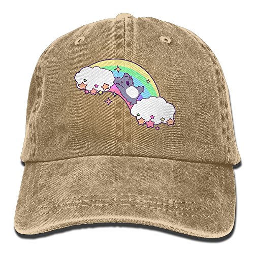 (Badoufa)/Accessories/Hats/DIRECT FROM USA/Badoufa Rainbow Koala Unisex Washed Baseball Cap Adjustable Cowboy Cotton Ball Hat Natural
