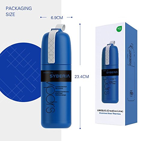 The Syberia thermos kids is double walled and vacuum insulated. Use this 12 ounce coffee travel mug at home, taking to school, work, in your car, sports, camping, traveling, at the beach or going on holiday with. Fill it with water, coffee, tea, milk, juice or other drinks.