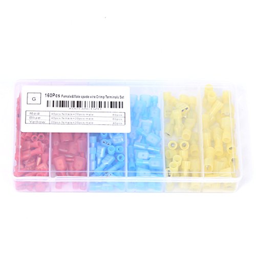 Ginsco 160pcs Nylon Fully Insulated Male / Female Spade Wire Crimp Quick Disconnects Wire Terminals Connector Set