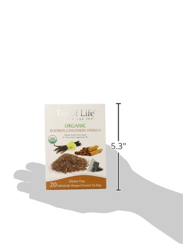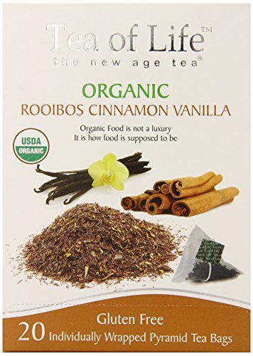 -. Binding : Grocery -. Brand : Tea of Life -. EAN : 0680275031635 -. Feature : Certified organic by control union, all agricultural ingredients are organically grown and processed, certified kosher, gluten free, packaging is 95% recycled paper board / Hot tea brewing, place one tea bag into the cup, add freshly boiled water (6 ounces) and steep for 2 to 3 minutes, add a slice of lemon if desired / Iced tea brewing, brew 6 tea bags in one pint of freshly boiled water, steep for 2 to 3 minutes add another pint of cool water refrigerate or serve over ice / Organic food is not a luxury, it is how food is supposed to be enjoy / Imported from Sri Lanka -. Label : Tea Of Life -. Manufacturer : Tea Of Life -. MPN : 11753 -. NumberOfItems : 1 -. PackageQuantity : 1 -. PartNumber : 11753 -. ProductGroup : Grocery -. ProductTypeName : GROCERY -. PublicationDate : 2013-05-21 -. Publisher : Tea Of Life -. Studio : Tea Of Life -. Title : Tea Of Life Organic Rooibos, Cinnamon Vanilla, 20 Count -. UPC : 680275031635